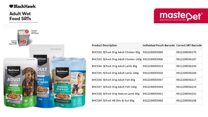 Masterpet are wanting to inform you of an issue identified with the recently launched Black Hawk Original & Healthy Benefits Wet Dog Food pouches.
