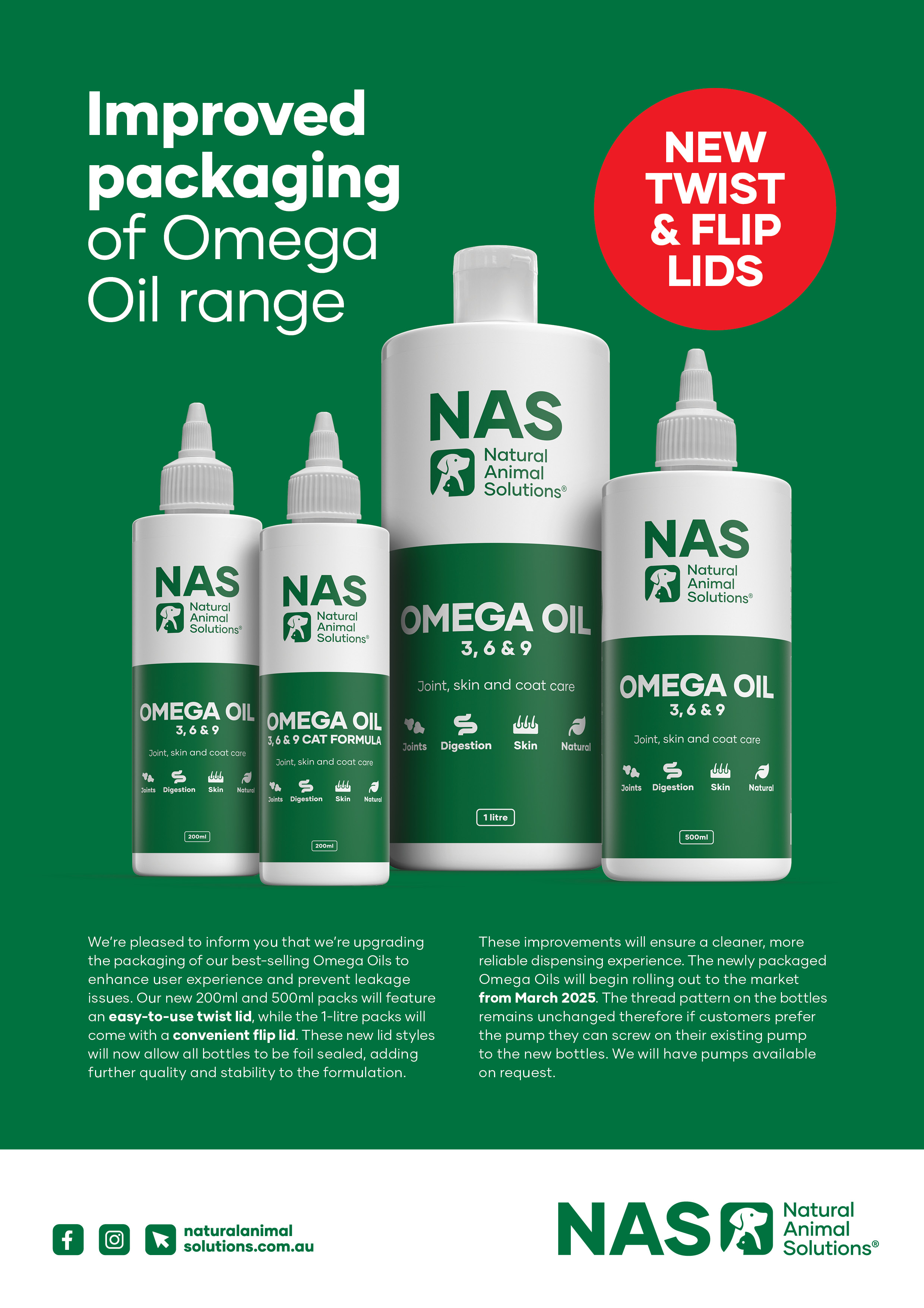 Natural Animal Solutions17/6/25 NAS welcomes a new and exciting look for there range, either packaging may arrive during this brand transition.