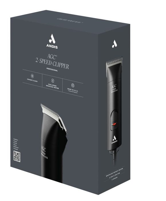 - Professional 2-speed clipper for cutting through all coat typesDetachable blade for easy cleaning and interchangeability - A brushless motor that lasts 10-12 times longer than normal rotary motors and provides maximum power and torque for tough grooming jobs - Comes with Andis #10 CeramicEdge Blade which runs cooler than normal steel blades and lasts 70% longerThe AGCB is for all breeds and coat types. An impressive brushless motor that will perform high-quality professional clipping time and time again with ease, boasting a 10,000 +hr life. A powerful motor and two speed functionality means this clipper will transition seamlessly between sensitive areas or thinner parts of the coat to thicker and tougher areas. It comes with an Andis #10 CeramicEdge blade which runs cooler and lasts 70% longer than normal steel blades. The AGCB 2-Speed clipper has a detachable blade system which means it can be interchanged with other blade lengths to improve blade longevity and to maintain a high-quality clip.