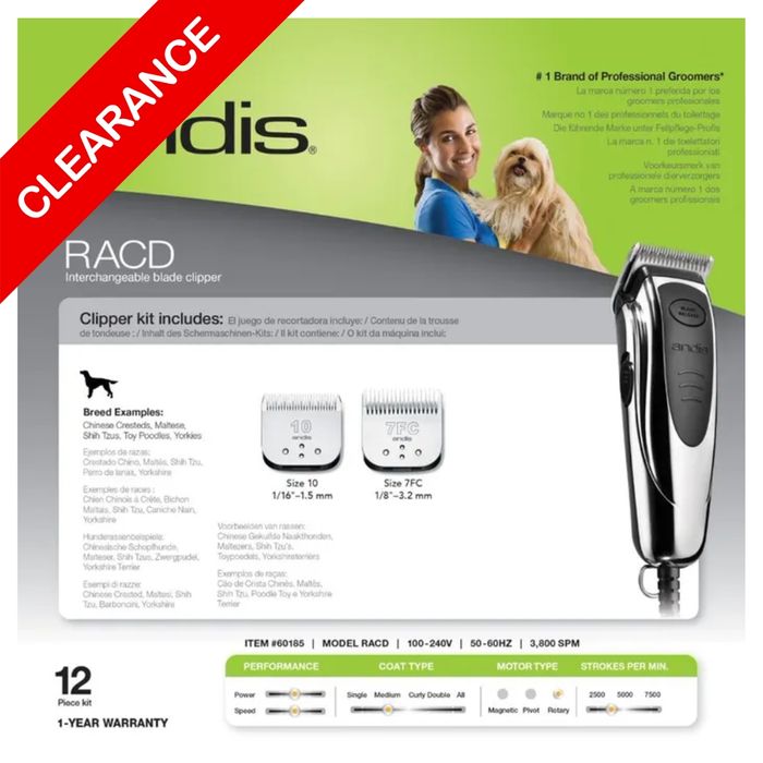 Boasting a maintenance free motor, quiet operation and a compact design this clipper is perfect for light DIY grooming. The only lighter clipper in our range to give you interchangeable blade functionality - you'll be able to keep your blades sharper for longer. The RACD is perfectly designed for light body grooming on single to medium coated breeds. Six attachment combs give you plenty of flexibility. A powerful motor, interchangeable blade functionality and two blade sizes means smooth - looking professional touch-ups from home.