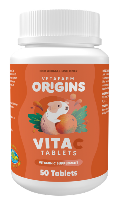 Vetafarm Furry Friends Vota C Plus Tablets Are Specifically For Guinea Pigs Where They May Experience Deficinies In Vitamin C In Their Diet. Please Note That This Is Not Required For Guinea Pigs Fed On Cavy Origins. This Vitamin C Supplement Is Also Packed Full Of Other Other Essential Vitamins That Are Required For The Health Of Guinea Pigs. An Added Bonus Are These Tablets Are Easily Dissolved In Water For Hassle Free Administration