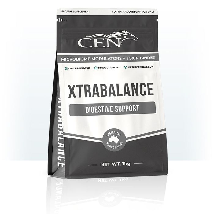 DESCRIPTIONSUPPORT AND MAXIMISE YOUR HORSE’S DIGESTIVE HEALTH WITH CEN XTRABALANCE SUPPLEMENT. CONTAINING PREBIOTICS AND PROBIOTICS TO OPTIMISE NUTRIENT UPTAKE AND MAXIMISING THE HORSE’S FEED CONVERSION WHILE PROMOTING A HEALTHY MICROBIOME.NATURAL MARINE SOURCED CALCIUM MAY ASSIST WITH BUFFERING THE STOMACH PH, REDUCING THE RISK OF HINDGUT ISSUES INDUCED BY STRESS. THE INCLUSION OF TWO TOXIN BINDERS ALSO HELPS BIND AND REMOVE MYCOTOXINS FOUND IN PASTURES.KEY FEATURES7 IN 1 DIGESTIVE SUPPLEMENT CONTAINING PROBIOTICS & PREBIOTICSPROMOTES A HEALTHY DIGESTIVE SYSTEMHELPS IMPROVE IMMUNITYOPTIMISES NUTRIENT UPTAKEASSISTS WITH WEIGHT-GAINMAY IMPROVE HOOF AND COAT QUALITYASSISTS IN REMOVING MYCOTOXINSSUPPORTS BEHAVIOUR AND TEMPERAMENTMAY REDUCE THE RISK OF DIGESTIVE UPSETS AND METABOLIC DISEASESFEED RATEBASED ON A 500KG HORSE —30G/DAY INCREASE TO 60G LEADING UP TO EVENT DAY (MIX WITH FEED). INTRODUCE SLOWLY AT A ¼ – ½ RATE AND INCREASE OVER A 5-7 DAY PERIOD.