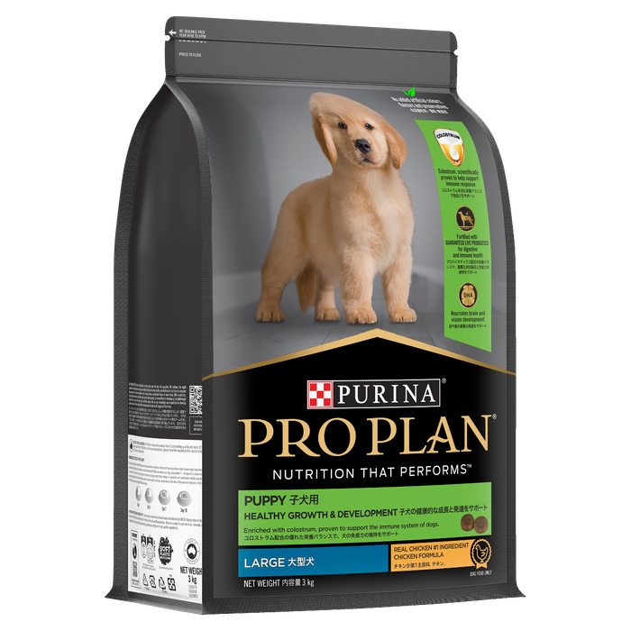 The First Year Of Your Dog'S Life Is Crucial To Their Long-Term Health, Which Is Why They Need Nutrition Specificially Formulated To Nourish Their Developing Bodies And Minds. Pro Plan Puppy Large Breed Chicken Dry Dog Food With Colostrum And Probiotics Combines All The Essential Nutrients That Puppies Need, Including Colostrum - Proven To Boost The Immune System And Protect Them From Common Intestinal Upsets. These Recipes Help Provide Targeted Benefits, Such As High Digestibility And High Nutrient Absorption To Support Your Dog’S Long-Term Health. The Natural Glucosamine And Minerals Help Support Healthy Joint, Skeletal And Teeth Development For Large Breed Puppies. Now With Pro Plan, You Can Nourish Your Dog'S Microbiome With Probiotics To Support Their Gut, Immune And Overall Health.
