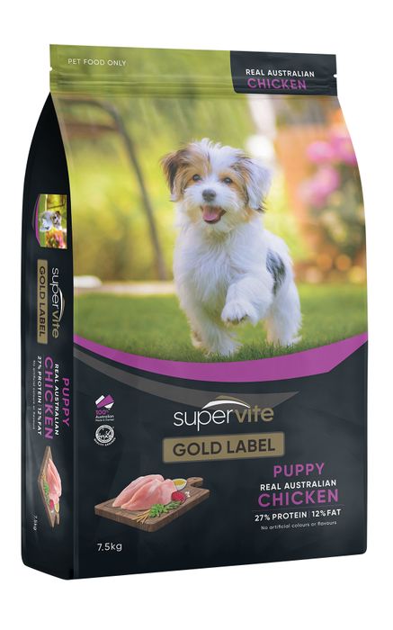 SuperVite Gold Label Puppy made with Real Australian Chicken, is a complete and balanced dry dog food. This well crafted, gourmet recipe is infused with premium quality ingredients to give your puppy the right nutrition and delicious taste.