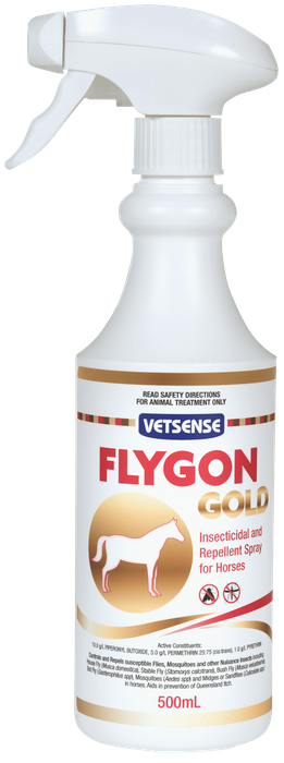 Flygon GOLD Controls and Repels susceptible Flies, Mosquitoes, and other Nuisance Insects and aids in the prevention of QLD Itch. Apply to horses and surrounds.