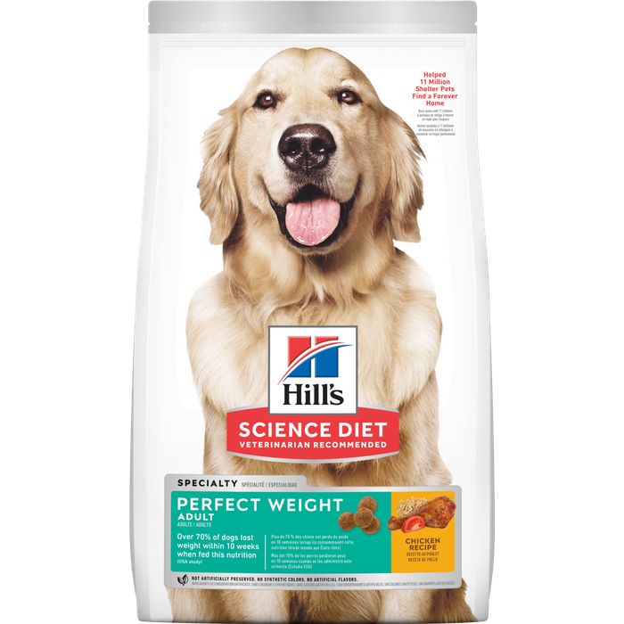 Science Diet Adult Perfect Weight dry dog food provides breakthrough nutrition formulated to help your dog achieve a healthy weight and improve quality of life.