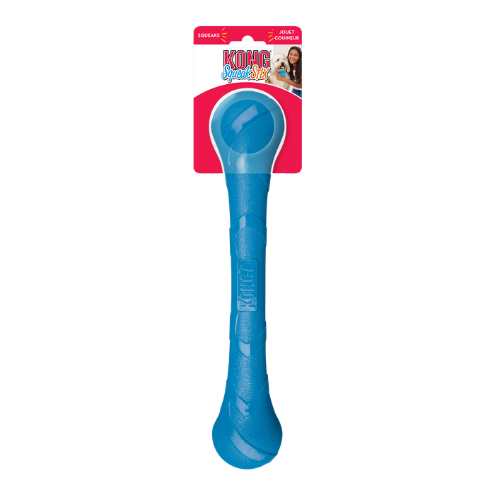 KONG SqueakStix is an extra-long and durable, fetch and tug toy that’s provides a safer alternative to wooden sticks. This rugged toy twists and flexes for dynamic tugging, with safely rounded edges and dual squeaker zones for double the fun. KONG SqueakStix have a big bounce for irresistible unpredictable action and continues to squeak when punctured all adding up to long-lasting fun.