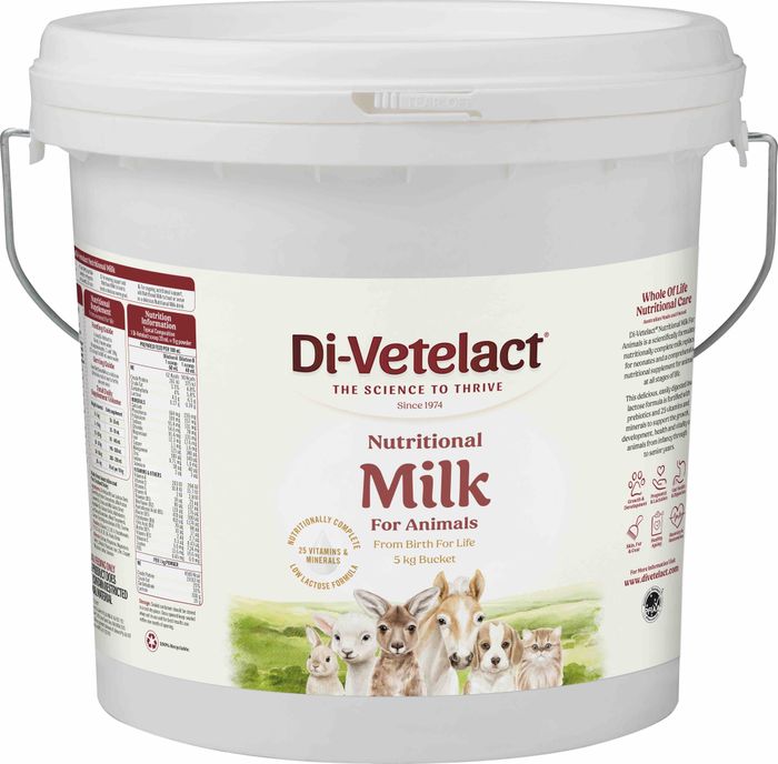 Di-Vetelact Nutritional Milk is a Scientifically Formulated,Nutritionally Complete Milk Replacer for Mammal and Marsupial Neonates &Comprehensive Nutritional Supplement forAnimals at All Life Stages.This delicious, easily digested low lactose formula is fortified with prebiotics and25 vitamins and minerals to support the growth, development, health and vitalityof animals form infancy through to senior years.Suitable forAll mammals and marsupialsMilk Replacer forBirth to weaned Infant Animals ( 0-6 weeks)Animals that are orphaned, early weaned or requiring supplemental milkNutritional Supplement forGrowing and Developing Animals ( 6weeks - 18months +)Pre-Natal, Pregnant and Lactating AnimalsAgeing and Elderly AnimalsConvalescing and Recuperating AnimalsWork and Show AnimalsDi-Vetelact Nutritional Milk is an excellent nutritional supplement in powder orliquid form as an added nutritional boost for optimum health, or during times ofstressNutrient Profile25 Vitamins and MineralsLow LactosePrebioticsAll Essential Amino AcidsMade with Australian and New Zealand Dairy IngredientsEasy to Prepare and ServeDi-Vetelact Scoop + Cooled Boiled Water = Nutritional MilkSee pack for complete guide on preparation, feeding and volumerecommendations. Or visit www.divetelact.com