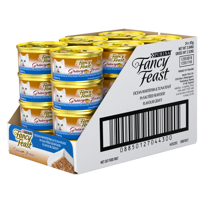 FANCY FEAST GL OCEAN WHITEFISH & TUNA FEAST SAUTEED SEAFOOD FLAVOUR GRAVY 24X85G