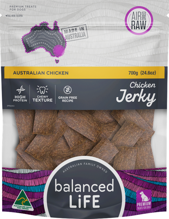 Balanced Life Chicken Jerky is a delicious meaty treat made from quality Australian meat. Great for occassional rewarding and treating