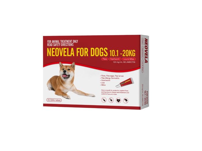 NEOVELA FOR DOGS WEIGHING BETWEEN 10.1KG-20KG IS A SAFE, MONTHLY SPOT-ON TREATMENT THAT PROTECTS YOUR DOG FROM FLEAS, HEARTWORM, AND OTHER PARASITES. KILLS ADULT FLEAS, EGGS, AND LARVAETREATS, CONTROLS, AND PREVENTS FLEA INFESTATIONSPREVENTS HEARTWORM DISEASETREATS AND CONTROLS EAR MITESTREATS AND CONTROLS SARCOPTIC MANGETREATS BITING AND SUCKING LICE