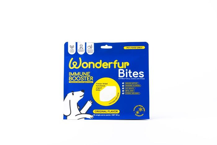 Wonderfur Immune Booster is a probiotic kefir functional treat for dogs, crafted to enhance gut health, support the immune system, and alleviate common allergy symptoms. These tasty, freeze-dried functional treats are packed with live cultures and natural ingredients, making them a nutritious and beneficial addition to your dog’s diet.