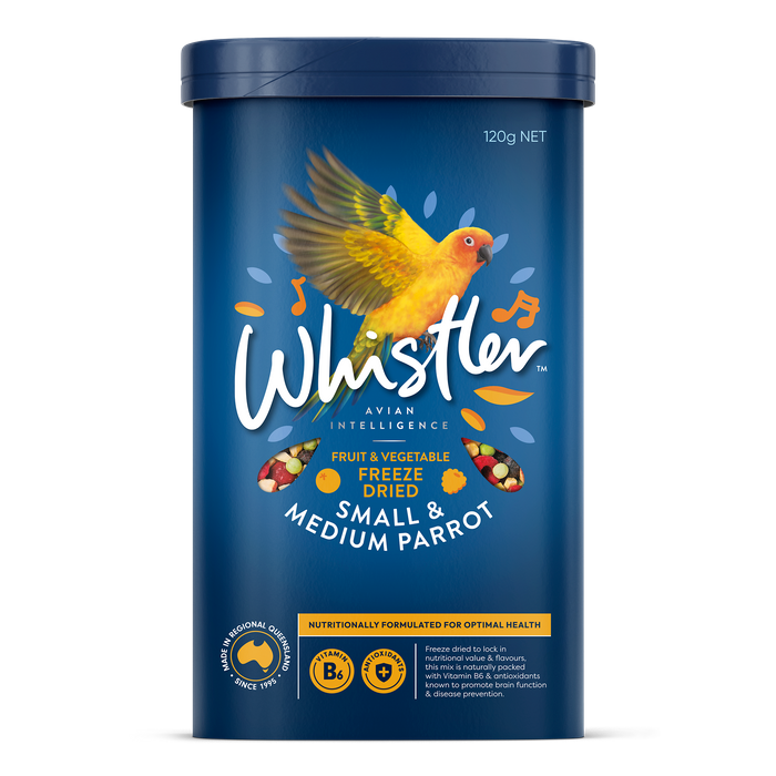 WHISTLER SMALL & MEDIUM PARROT FREEZE DRIED MIXED FRUIT & VEGETABLE MEDLEY 120G