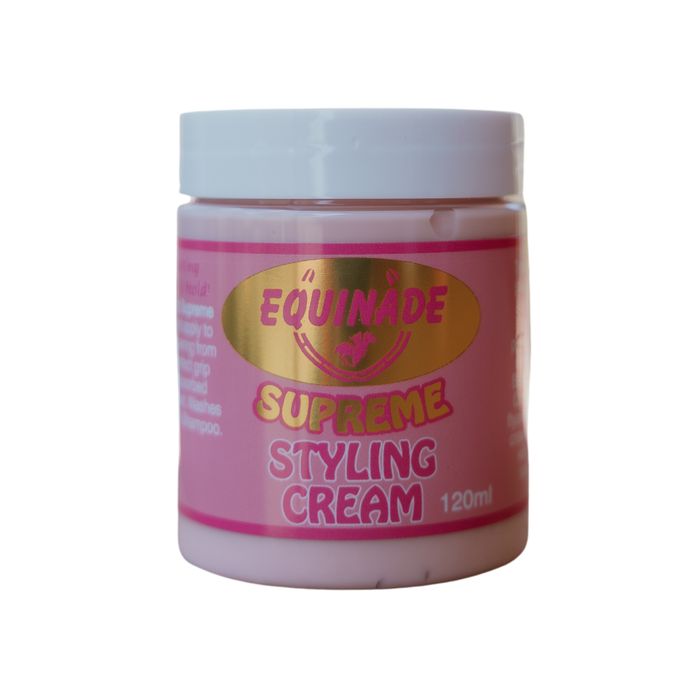 Revolutionise your plaiting rountine with Equinade Supreme Styling Cream!Elevate your horse's show preparation with Equinade's grounbreaking Supreme Styling Cream. This innovative 3-in-1 solution offers exceptional grip, radiant shine and unwavering hold, ensuring flawless plaits every time.Why choose Equinade Supreme Styling Cream? Effortless Application: Supreme Styling Cream glides smoothly onto dry hair, providing an ideal balance between grip and flexibility for impeccable plaits. Simplifies Show Preparation: Infused with a superior blend of waxes, it simplifies your plaiting routine, tames fly away hairs, and eliminates the need for additional wax sticks, gels, or sprays. Revolutionary Formula: The water-based formula is non-sticky once dry, preventing dirt and dust attraction. Supreme Styling Cream rinses out effortlessly with a simple shampoo, leaving manes and tails in pristine condition. No Extra Hairspray Needed: Enjoy excellent hold with noursihing ingredients that dry clear, enhance shine and improve hair health, delivering a polished and professional look every time. Exceptional Hold: Keeps plaits neat and secure for longer, even without a hood or rug, no matter the weather!Equinade Supreme Styling Cream has a delightful pink marshmallow fragrance, and not only simplifies your plaiting routine, but also guarantees your horse looks their absolute best.Gain the edge and prepare with confidence, for stunning results at every show!Elevate your horse's show preparation with Equinade's grounbreaking Supreme Styling Cream. This innovative 3-in-1 solution offers exceptional grip, radiant shine and unwavering hold, ensuring flawless plaits every time.