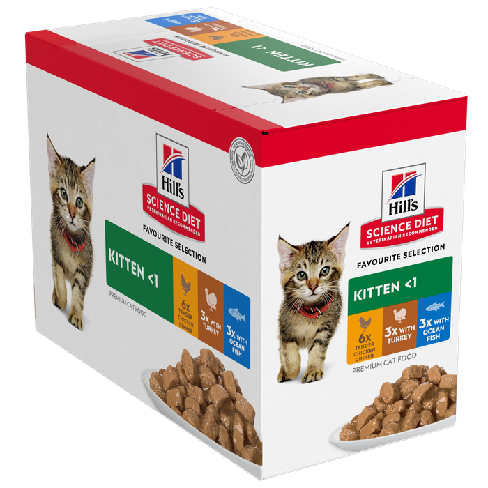 KEY NUTRIENTS AND PROTEINS FOR YOUR GROWING KITTEN?CLINICALLY PROVEN ANTIOXIDANTS, VITAMIN C+E, FOR A HEALTHY IMMUNE SYSTEM IN KITTENS. HIGH QUALITY INGREDIENTS FOR EASY AND HEALTHY DIGESTION IN KITTENS?PROVIDES BALANCED MINERALS SO KITTENS CAN HAVE STRONG BONES AND HEALTHY TEETH?MADE WITH HIGH QUALITY INGREDIENTS?NOT ARTIFICIALLY PRESERVED. NO SYNTHETIC COLOURS. NO ARTIFICIAL FLAVOURS?FAVOURITE SELECTION VARIETY PACK CONTAINS 6X CHICKEN, 3X TURKEY, 3X OCEAN FISH"