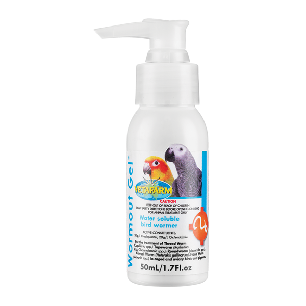 Vetafarm Wormout Gel Is For The Treatment Of Thread Worm (Capillaria Spp.) Tapeworm (Raillietina Spp, Choanotaenia Spp.), Roundworm (Ascaridia Spp.), Caecal Worm (Heterakis Gallinarum), Hook Worm (Acuaria Spp.) In Caged And Aviary Birds And Pigeons.