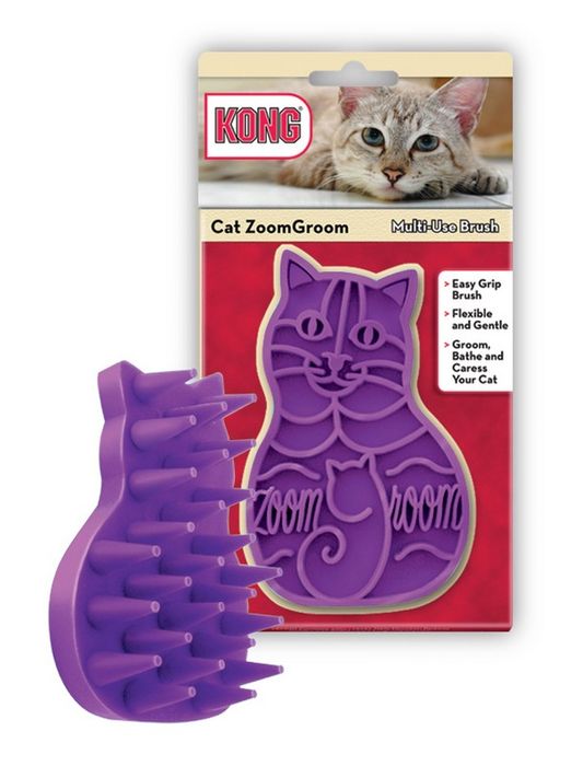 The Kong Zoomgroom® For Cats Massages And Grooms At The Same Time. The Soft, Rubber Fingers Are A Magnet For Loose Hairs. Helps Condition Skin And Reduce Hairball Formation. The Gentle Massage Action Calms Cats, Especially In Potentially Traumatic Situations Such As Veterinarian Visits.