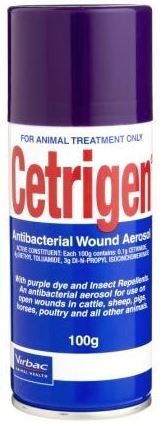 Cetrigen Is A Unique Formula To Treat Cuts And Superficial Wounds In All Animals. This Product Contains An Antibacterial Agent, Insect Repellent And An Added Feature Of Purple Dye To Indicate Coverage Of The Intended Site.
