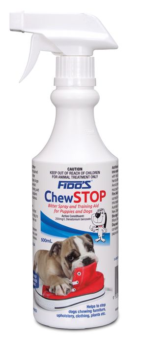 Fidos Chew Stop Bitter Spray Has Been Formulated With An Extremely Bitter Taste That Discourages Dogs And Puppies From Chewing Household Items Like Furniture, Clothing, Shoes, Plants Etc. A Useful Training Aid For Helping Young Puppies To Understand Boundaries.