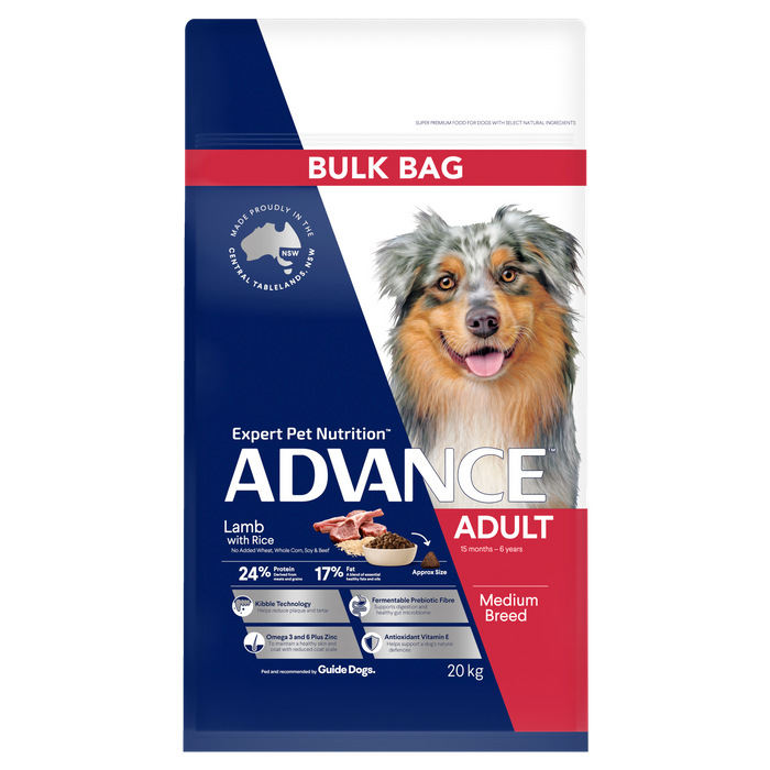 Advance Adult All Breed Dry Dog Food Lamb 20Kg Is A Super Premium Food For Dogs With Select Natural Ingredients. Supports Dental Health Through Mechanical Abrasion To Help Reduce Plaque And Tartar Accumulation. Also Contains Nutrients To Support Digestive Health Immune Health And A Healthy Skin And Shiny Coat Advance Is Scientifically Formulated To Help Improve Dog Health.