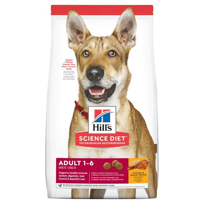 Hills™ Science Diet™ Adult Dry Dog Food Provides High Quality, Easy-To-Digest Ingredients That Fuel The Energy Needs Of Your Adult Dog. Packed With Omega-6S & Vitamin E To Give Your Dog A Healthy Skin & Coat, This Premium Dog Food Made With Natural Ingredients Also Provides High-Quality Protein To Help Your Full Grown Dog Maintain Muscle. Since Adult Dogs Need A Strong Gut, This Grown Dog Food Uses Natural Fibres To Promote Healthy Digestion.