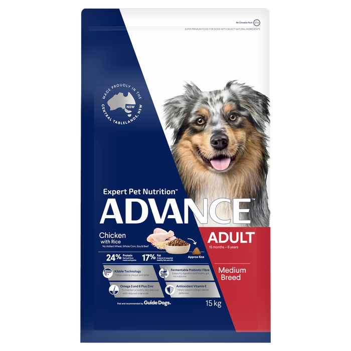 Advance Adult All Breed Dry Dog Food Chicken 15Kg Is A Super Premium Food For Dogs With Select Natural Ingredients. Supports Dental Health Through Mechanical Abrasion To Help Reduce Plaque And Tartar Accumulation. Also Contains Nutrients To Support Digestive Health Immune Health And A Healthy Skin And Shiny Coat Advance Is Scientifically Formulated To Help Improve Dog Health.