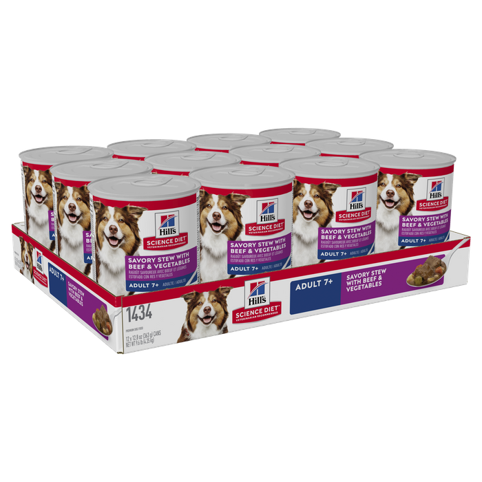 Hill'SĀ Science DietĀ Adult 7+ Savory Stew With Beef & Vegetables Dog Food Combines Delicious Ingredients With Precise Nutrition To Support Older Dogs In Energy And Activity Level.