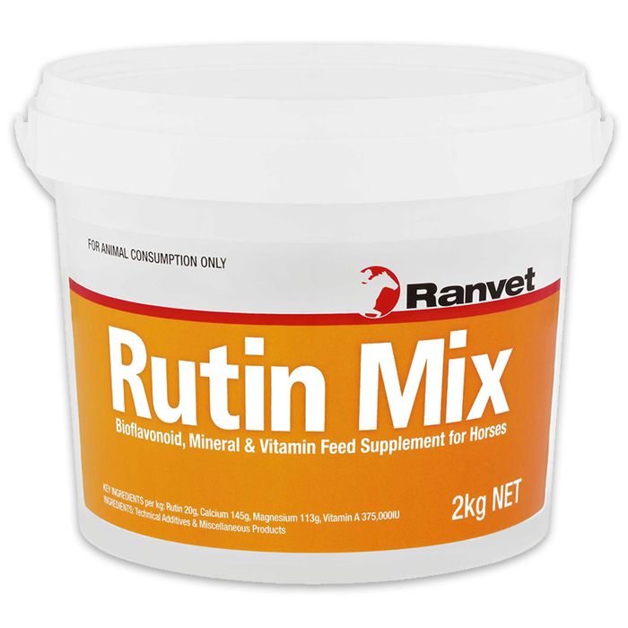 Ranvet Rutin Mix Contains Bioflavonoid Compounds That Aid In The Prevention And Treatment Of Bleeding In Racehorses, Caused By Capillary Blood Vessel Fragility. Ranvet Rutin Mix Helps To Improve Blood Circulation, Strengthens And Increase Elasticity Of Blood Vessels And Capillary Walls, Improves Lymphatic Flow And Function And Can Be Supplemented As An Immune System Enhancement.