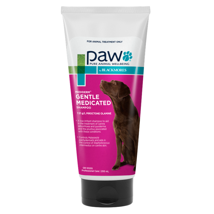 Paw Mediderm® Gentle Medicated Shampoo Is A Low-Irritant Shampoo That Aids In Preserving The Skin Barrier Function And Managing Recurring Skin Conditions While Treating Canine Seborrhoea, Pyoderma And The Pruritus (Itch) Associated With These Conditions.