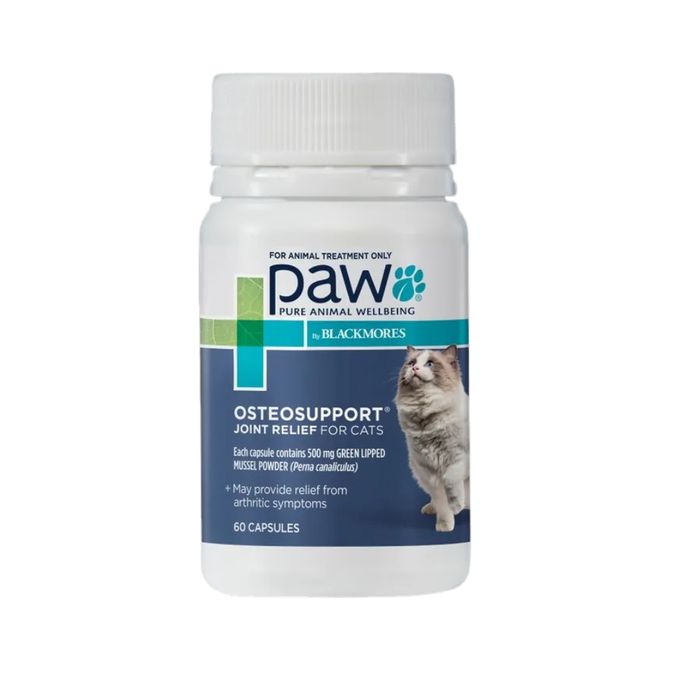 CONTAINS 100% NATURAL, FRESH AND PURE GREEN LIPPED MUSSEL CLINICALLY PROVEN TO PROVIDE RELIEF OF ARTHRITIC SYMPTOMS IN A MEASURED CAPSULE DOSE.PERNA128®, THE HIGHLY CONCENTRATED GREEN LIPPED MUSSEL POWDER IN PAW OSTEOSUPPORT JOINT CARE POWDER FOR CATS, IS FRESHLY HARVESTED GREEN LIPPED MUSSEL MANUFACTURED AT LOWER TEMPERATURES FOLLOWING A ONE STEP PROPRIETY PROCESS FOR A HIGHER YIELD OF NUTRIENTS THAT PROVIDES: