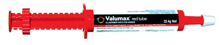Valumax Red Tube Is A Complete All Wormer For Horses That Treats All Worms, Including Tapeworm.Valumax Red Tube Is Highly Effective Against Tapeworms, Large Strongyles (Bloodworm), Small Strongyles (Red Worm), Ascarids (Roundworms), Pinworms, Hairworms, Stomach Worms, Intestinal Threadworms, Neck Threadworms, Lungworms And Bots. A Reduction In The Prevalence Of Associated Colic Could Be Expected. Valumax Red Tube Is Also Effective For The Control Of Skin Lesions Caused By Habronema And Draschia Spp. Cutaneous Larvae (Summer Sores) And Onchocerca Spp, Microfilariae (Cutaneous Onchocerciasis).Treats 600Kg Bodyweight, Dosage: 6-8 Weeks.Valumax Comes In A Distinctive Red Tube.