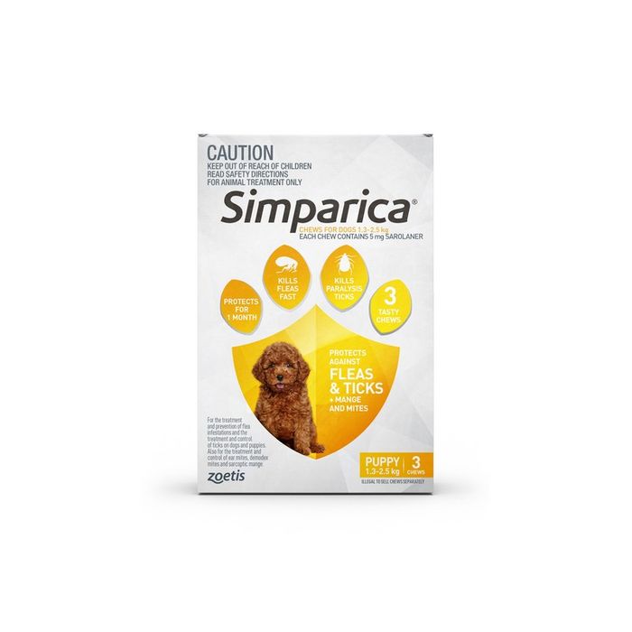 Simparica Is A Delicous Chew Providing Protection Against Fleas, Ticks, Mange And Mites For The Entire Month. Suitable For Medium Breed Dogs It Not Only Kills Adult Fleas But Kills Them Before They Can Even Lay Eggs Protecting Your Household For Up To 35 Days. Ticks Can Be A Major Issue Which Is Why Simparica Targets All Three Key Ticks Including Bush, Brown And The Lethal Paralysis Tick. As A Spectrum Chew It Not Only Protects Against Fleas And Ticks But Rather Is The Only Chewable For Canines Registered For Control Against Sarcoptioc Mange, Ear And Demodex Mites. All This In A Tasty Palatable Chew Which Can Be Given To Dogs With Or Without Food Making It The Optimal Treatment In Protecting Them Against Nasties For The Entire Month.