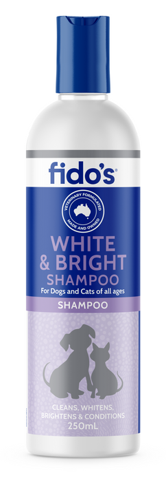 Fidos White And Bright Shampoo Contains Optical Whiteners To Add Brilliance And Shine To White And Light Coloured Coats. It Is Soap Free And Enriched With Orange And Grapefruit Essential Oils – Suitable To Use With Long Term Flea Control Preparations