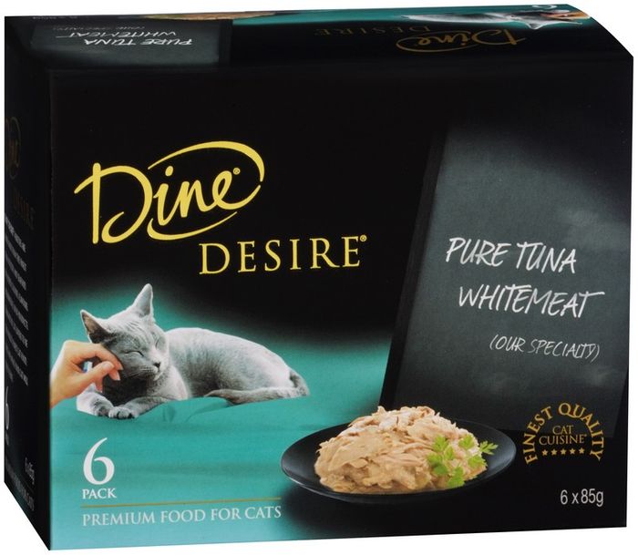 Dine Desire Is A Range Of Delicious Meals For Your Cat, Created From Enticing Ingredients, Carefully Chosen And Hand Prepared Using Quality Tuna, Poultry And Seafood. Even The Most Discerning Feline Will Be To Be Tempted By Dine Desire With Pure Tuna Whitemeat Premium Cat Food. Its A Tantalising Ocean Flavour With An Easy On The Tongue Texture. We At Dine Are Sure Your Cat Will Love These Products. If They Don’T Delight Your Cat, We Will Give You Your Money Back.-Exquisite Cat Food That Will Impress Even The Most Discerning Feline Friend.              -A Superior Recipe Of Prime Succulent Pieces, In An Extraordinary Sauce Made With No Added Preservatives-Grain Free And Made With No Corn, Soy Or Wheat For Sensitive Cats-Made With Pure Tuna Whitemeat