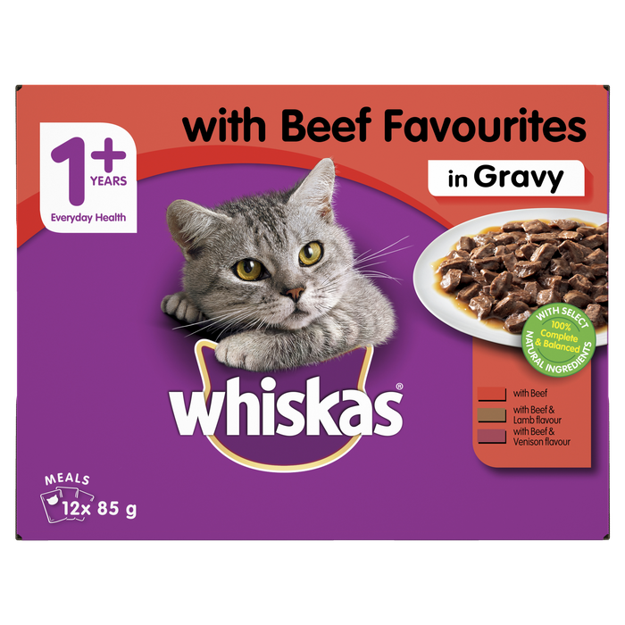 WHISKAS FAVOURITES BEEF IN GRAVY MVMS 12X85G