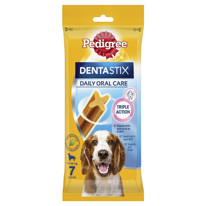 It’S A Sad Fact That 4 Out Of 5 Dogs Have Gum Disease. This Can Often Lead To Painful And Expensive Treatment. Pedigree Dentastix Reduces Tartar Build-Up By Up To 80% When Fed Daily Through A Combination Of Special Texture And Active Ingredients. Pedigree Dentastix Has A Unique X Shape, Special Texture And Two Active Ingredients That When Fed Daily, Is Scientifically Proven To Help Reduce The Build-Up Of Tartar By Up To 80%. Triple Action -Reduces Tartar Build-Up By Up To 80% -Cleans Hard To Reach Teeth -Supports Gum Health No Added Artificial Colours Or Flavoursunique X-Shape Specially Designed Gently Abrasive Texture Active Ingredients Which Slow Down Tartar Buildup And Make It Easier To Remove. No Added Sugar Low In Fat 82 Calories Per Stick