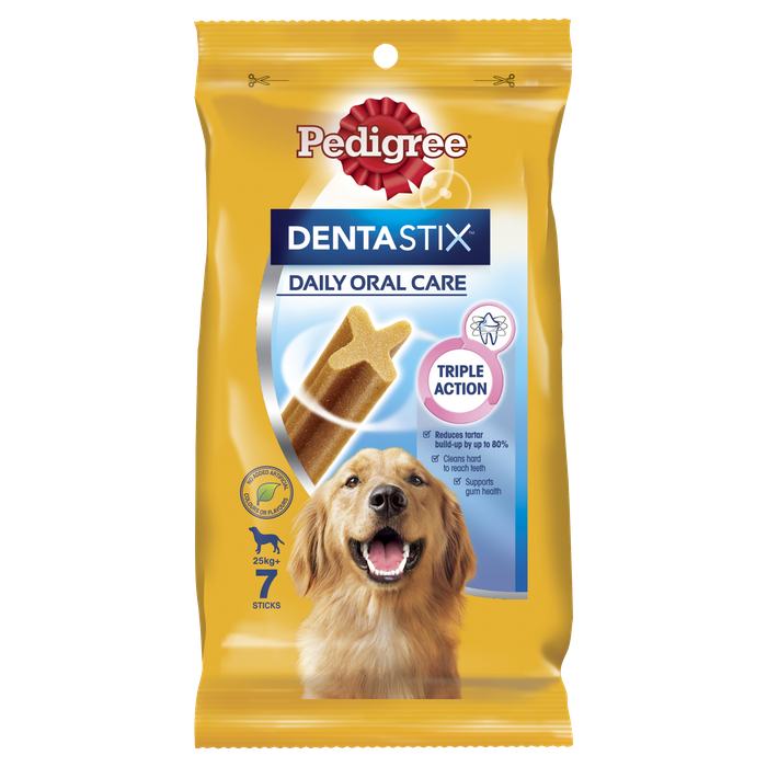 It’S A Sad Fact That 4 Out Of 5 Dogs Have Gum Disease. This Can Often Lead To Painful And Expensive Treatment. Pedigree Dentastix Reduces Tartar Build-Up By Up To 80% When Fed Daily Through A Combination Of Special Texture And Active Ingredients. Pedigree Dentastix Has A Unique X Shape, Special Texture And Two Active Ingredients That When Fed Daily, Is Scientifically Proven To Help Reduce The Build-Up Of Tartar By Up To 80%. Triple Action -Reduces Tartar Build-Up By Up To 80% -Cleans Hard To Reach Teeth -Supports Gum Health No Added Artificial Colours Or Flavoursunique X-Shape Specially Designed Gently Abrasive Texture Active Ingredients Which Slow Down Tartar Buildup And Make It Easier To Remove. No Added Sugar Low In Fat 82 Calories Per Stick