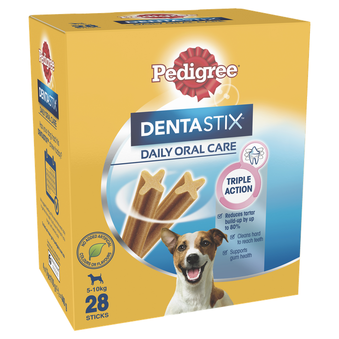 It’S A Sad Fact That 4 Out Of 5 Dogs Have Gum Disease. This Can Often Lead To Painful And Expensive Treatment. Pedigree Dentastix Reduces Tartar Build-Up By Up To 80% When Fed Daily Through A Combination Of Special Texture And Active Ingredients. Pedigree Dentastix Has A Unique X Shape, Special Texture And Two Active Ingredients That When Fed Daily, Is Scientifically Proven To Help Reduce The Build-Up Of Tartar By Up To 80%. Triple Action -Reduces Tartar Build-Up By Up To 80% -Cleans Hard To Reach Teeth -Supports Gum Health No Added Artificial Colours Or Flavoursunique X-Shape Specially Designed Gently Abrasive Texture Active Ingredients Which Slow Down Tartar Buildup And Make It Easier To Remove. No Added Sugar Low In Fat 82 Calories Per Stick