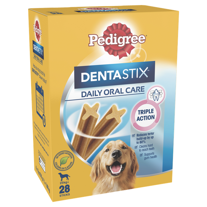 4 Out Of 5 Dogs Over The Age Of 3 Have Gum Disease. This Is Caused By Plaque And Tartar Build-Up Around The Gum Line, Which Can Be Reduced By An Effective Oral Care Routine. Pedigree Dentastix Has A Unique X Shape And, When Fed Daily, The Combination Of Its Special Texture And Active Ingredients, Is Scientifically Proven To Help Reduce Tartar Build-Up By Up To 80%. So, To Keep Your Dog’S Teeth And Gums Healthy And Strong, Use Great Tasting Pedigree Dentastix Every Day.Triple Actionreduces Tartar Build-Up By Up To 80%Cleans Hard To Reach Teethsupports Gum Health-Unique X-Shapespecially Designed Gently Abrasive Textureactive Ingredientsno Added Sugarlow In Fatno Added Artificial Colours Or Flavours51 Calories Per Stick