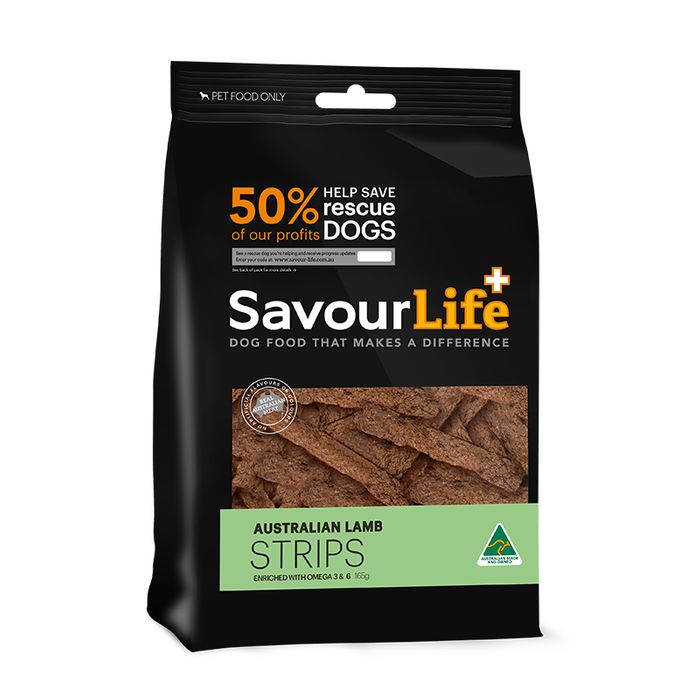 Savourlifes Delicious Australian Lamb Strips Contain No Artificial Flavours Or Colours And Are Made From Real Australian Meat! They Are Enriched With Essential Vitamins And Minerals For Better Health And The Addition Of Fish Oil Gives A Vital Boost Of Omega 3 & 6 For A Shiny And Healthy Coat. We Use A Special Drying Process To Capture The Natural Goodness And Their Naturally Chewy Texture Is Great For Promoting Healthy Teeth And Gums. A Delicious, Healthy Treat For Dogs Of All Shapes And Sizes. 50% Of Savourlifes Profits Are Donated To Rescue Shelters.