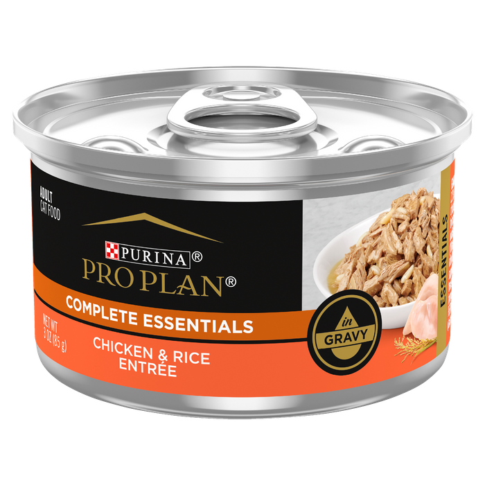 Pro Plan Complete Essentials Chicken & Rice Entrée In Gravy Wet Cat Food Is Advanced Nutrition That Is 100% Complete And Balanced, With Scientifically Proven Benefits To Help Give Your Pet The Best Possible Nutrition To Lead A Long, Healthy Life. Made With Real Chicken, Complemented With Rice And Served In Gravy For A Taste Cats Love.• Made With Real Chicken, Complemented With Rice• Optimal Protein And Fat Levels Help Promote Ideal Body Condition• Helps Support A Healthy Immune System