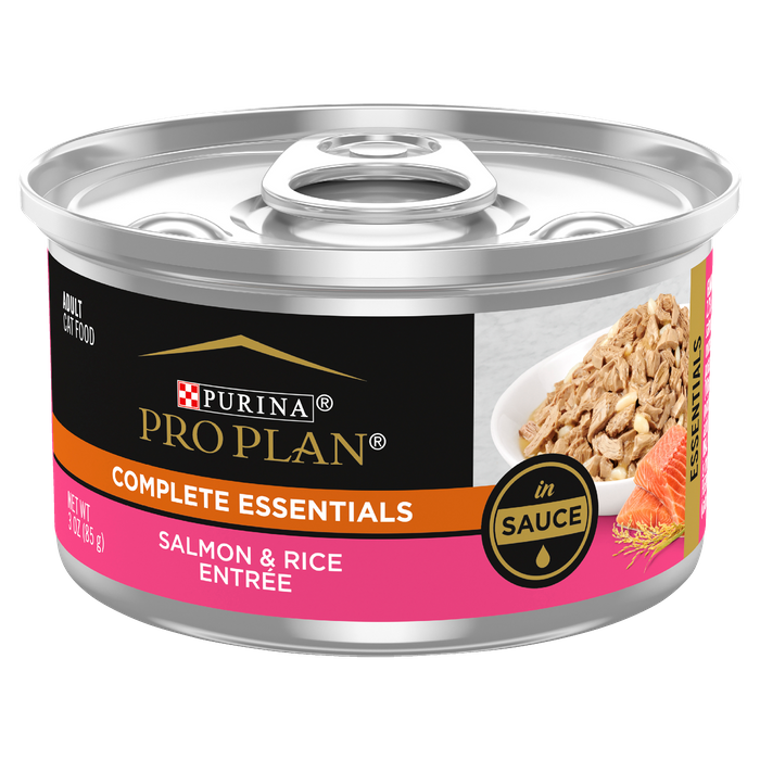 Pro Plan Complete Essentials Salmon & Rice Entrée In Sauce Wet Cat Food Is Advanced Nutrition That Is 100% Complete And Balanced, With Scientifically Proven Benefits To Help Give Your Pet The Best Possible Nutrition To Lead A Long, Healthy Life. Tender Pieces In Sauce, Made With Real Salmon And Complemented With Rice For A Taste Cats Love. Made With Antioxidants For A Healthy Immune System As Well As Omega-6 Fatty Acids And Vitamin A To Nourish Skin And Coat. • Made With Real Salmon, Complemented With Rice• Optimal Protein And Fat Levels Help Promote Ideal Body Condition• Helps Support A Healthy Immune System