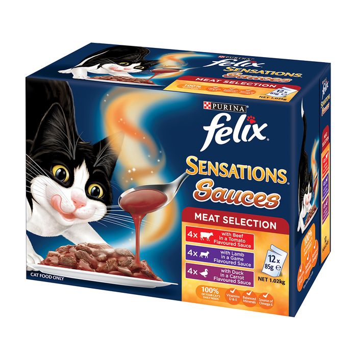 Felix Sensations Sauces Meat Selection Is A Range Of Delicious Meals With Tender Mouth-Watering Meaty Pieces Teamed With Different Flavoured Sauces For A Succulent Surprise. They Look Smell And Taste So Delicious We Are Sure Your Cat Will Find Them Irresistible. These Delicious Meals Are Made With The Ideal Combination Of Vitamins D & E Balanced Minerals And Omega 6 Fatty Acids. They Are Full Of Healthy Goodness To Satisfy 100% Of Your Cat’S Daily Needs When Fed According To The Feeding Guidelines On Pack.