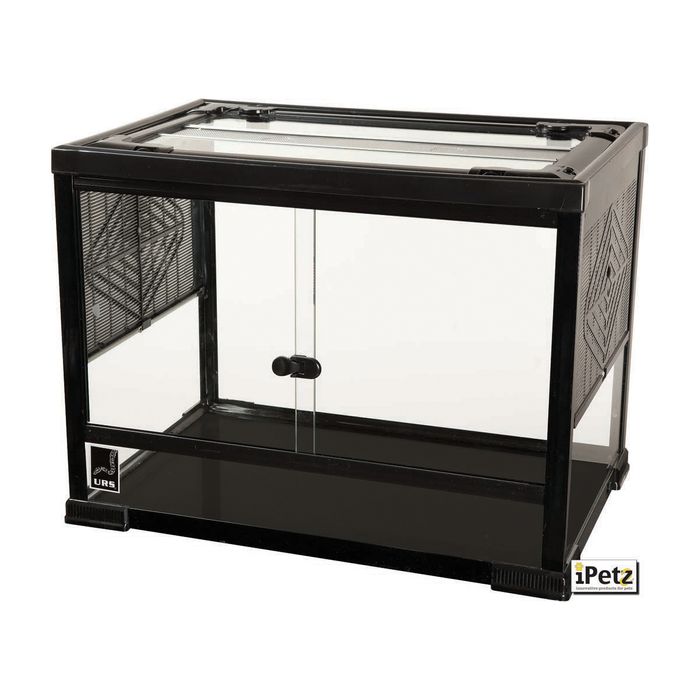 Suitable For Reptiles, Amphibians, Insects & Arachnids, Front Glass Slide Doors & Top Opening Which Securely Locks With Spaces At The Top For Cords Such As Thermostat Probes, Light Fitting Cable Or Heating Cord To Pass Through With The Lid Still Securely In Place.