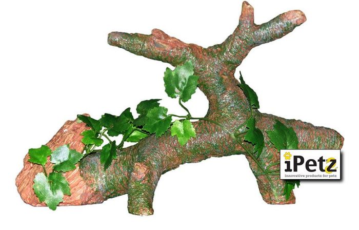 Log With Silk Plant - Medium Ornament Is Suitable For Either Being Submersed In Your Aquarium Or In Your Reptile Enclosure , Add A Splash Of Colour And Design To Your Aquariums And Enclosures With This Range Of Decorative Cage Furniture. This Range Of Decorative Furniture Can Be Used As An Alternative To Real Rocks And Plants. They Look Realistic But Are Light Weight, Durable And Easy To Clean. Size 365 X 160 X 215 Mm.