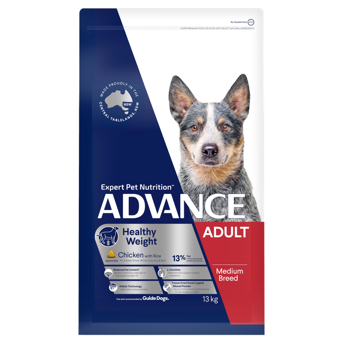 Advance Weight Control All Breed Dry Dog Food Chicken 13Kg Is An Australian Made Super Premium Food For Dogs With Select Natural Ingredients. Formulated So That Your Dog Maintains A Complete And Balanced Vitamin/Mineral Intake Whilst Consuming Fewer Calories. Supports Dental Health Through Mechanical Abrasion To Help Reduce Plaque And Tartar Accumulation. Also Contains Nutrients To Support Digestive Health Immune Health And A Healthy Skin And Shiny Coat Advance Is Scientifically Formulated To Help Improve Dog Health.