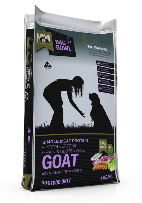 Meals For Mutts Single Protein Grain Free Goat 14Kg. Single Meat Proteins Are Gaining More And More In Popularity Because They Provide A Healthy Alternative To Mixed Protein Meals. It Contains Less Calories, Less Fat And Less Cholesterol. Goat Meat Is A Leaner Alternative As It Contains 27% Protein And Only 16% Fat. Ideal For Dogs With Sensitivities And Allergies, It'S Suitable For All Breeds And All Lifestages. Features:, Rich In Protein To Contribute To Muscle Growth;,Lowers Inflammation,Weight Management Through Added Vitamin B,Improves Blood Circulation,Natural Antidepressant, Containing Vitamin B12 Which Can Treat Stress,Essential Minerals And Phosphorus To Support Heart Circulation,Omega 3 Fatty Acids And Calcium Support Good Bone Healthall Meals For Mutts Single Protein Food Contains The Following Benefits:, Rich In Nutrition,Hypoallergenic,Gluten Free,Grain Free,Packed With Omega 3, 6 And 9,Gmo Free,High In Protein,No Preservatives,Ingredients*:Goat Meat, Sweet Potato, Seasonal Vegetables, Alfalfa, Natural Fats And Oils, Omega 3, 6 & 9, Coconut Oil, Turmeric, Parsley, Probiotic, Kelp, Vitamins A, C, D3, E, K, B1, B2, B6, B12, Niacin, Pantothenic Acid, Folacin, Biotin And Natural Preserved Using Vitamin E And Rosemary Extract. Feeding Guide:,Check The Manufacturer'S Feeding Guide On The Bag To Ensure You'Re Feeding The Right Amount. Daily Portion Sizes Will Depend On Your Dog'S Weight And Vary From 90G To 350G Daily.