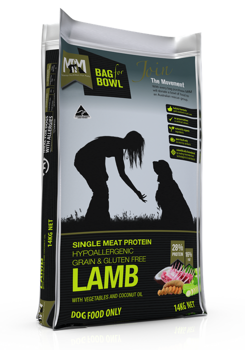 Meals For Mutts Single Protein Grain Free Lamb 14Kg. Single Meat Proteins Are Gaining More And More In Popularity Because They Provide A Healthy Alternative To Mixed Protein Meals. It Contains Less Calories, Less Fat And Less Cholesterol. Lamb Meat Meets The Gold Standard In Holistic Pet Care. No Artificial Preservatives Or Colours And It'S Made With All Natural Ingredients. It Contains 28% Protein And Only 16% Fat. Ideal For Dogs With Sensitivities And Allergies, It'S Suitable For All Breeds And All Lifestages. Features:, Anti-Inflammatory,Supports Heart Health,Highly Digestible, Results In Firmer Stools,Natural Antidepressant, Containing Vitamin B12 Which Can Treat Stress,Encourages A Healthy Skin And Coat;All Meals For Mutts Single Protein Food Contains The Following Benefits:, Rich In Nutrition,Hypoallergenic,Gluten Free,Grain Free,Packed With Omega 3, 6 And 9,Gmo Free,High In Protein,No Preservatives,Ingredients*:Lamb Meat, Sweet Potato, Seasonal Vegetables, Alfalfa, Natural Fats And Oils, Omega 3, 6 & 9, Coconut Oil, Turmeric, Parsley, Probiotic, Kelp, Vitamins A, C, D3, E, K, B1, B2, B6, B12, Niacin, Pantothenic Acid, Folacin, Biotin And Natural Organic Acids, Plus Minerals, Calcium, Phosphorus, Sodium, Copper, Zinc, Iron, Manganese And Iodine. Preserved Using Vitamin E And Rosemary Extract. Feeding Guide:,Check The Manufacturer'S Feeding Guide On The Bag To Ensure You'Re Feeding The Right Amount. Daily Portion Sizes Will Depend On Your Dog'S Weight And Vary From 90G To 350G Daily.