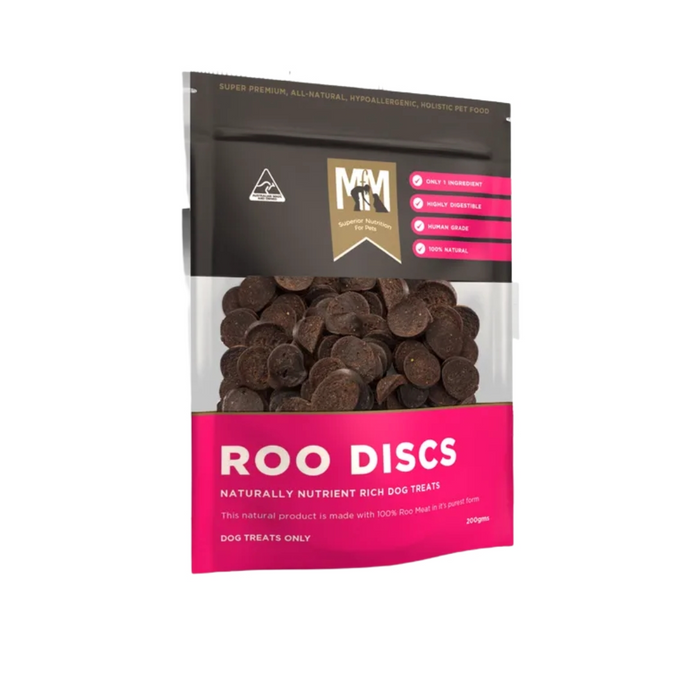 Meals For Mutts Dog Roo Treats 200G. Naturally Rich In Nutrients, Meals For Mutts Roo Discs For Dogs Are A Great Alternative To Other Processed Treats. An Ideal Treat To Use For Rewarding And Training Your Dog, These Discs Are Free From Preservatives Or Nasty Additives. Naturally Dehydrated To Lock In The Meaty Flavour, These Treats Are High In Essential Vitamins And Minerals. Even The Fussiest Of Dogs Will Love The Taste. Best Of All Roo Discs Are Actually Hypoallergenic Which Means That Dogs With Food Sensitivities Can Enjoy Them Too. While These Treats Are Made With Dogs In Mind, They Are Suitable For Cats As Well. Intended For In Between Meals Feeding Only. This Product Should Not Supplement Fresh Meat And Kibble. Always Have Fresh Water Available For Your Dog. These Treats Are Also Available In Other Flavours. For More In The Meals For Mutts Range, See Below.