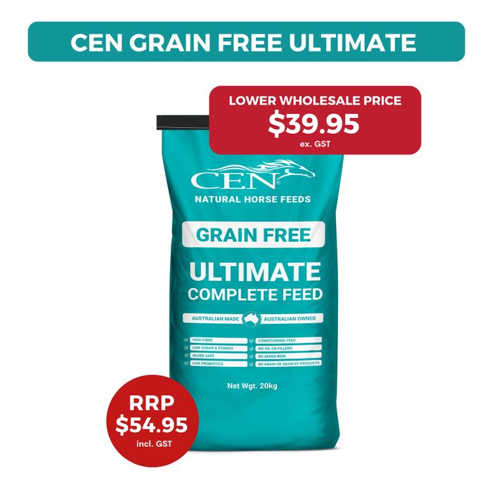 CEN GRAIN FREE COMPLETE HORSE FEED PROVIDES YOUR HORSE WITH THE NECESSARY DAILY NUTRIENT REQUIREMENTS TO SUPPORT OPTIMAL HEALTH AND PERFORMANCE. MADE WITH 100% HUMAN GRADE RAW AUSTRALIAN INGREDIENTS, PERFECT FOR ALL HORSES FROM PLEASURE TO PERFORMANCE.